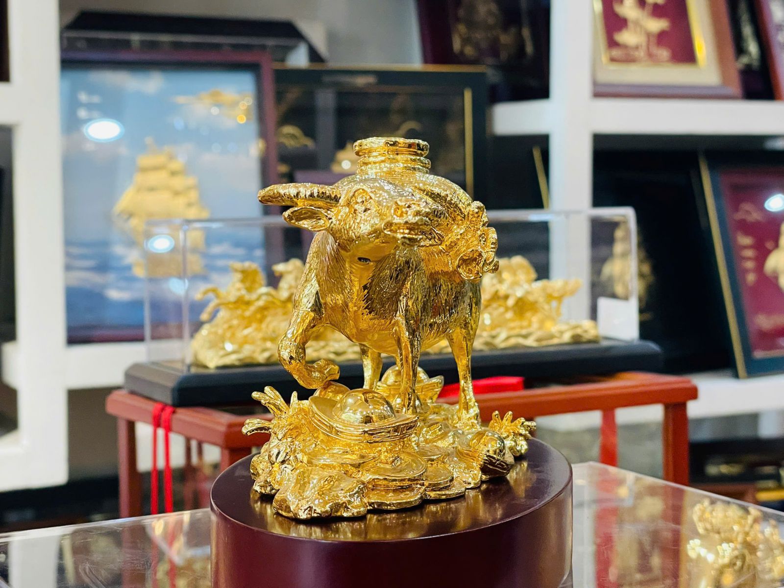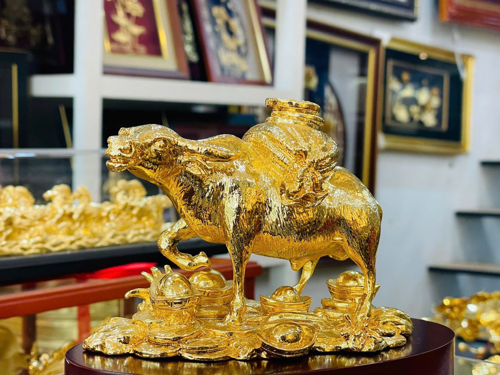 Khác với những vật phẩm trang trí thông thường, tượng trâu mạ vàng 24k Kim Ngưu Tụ Lộc có giá trị sưu tầm cao nhờ chất liệu quý, kỹ thuật chế tác tinh xảo và ý nghĩa phong thủy bền vững. Đây không chỉ là món quà của hiện tại mà còn có thể lưu giữ lâu dài, trở thành bảo vật truyền đời, biểu trưng cho sự thịnh vượng và phúc lộc của gia tộc.