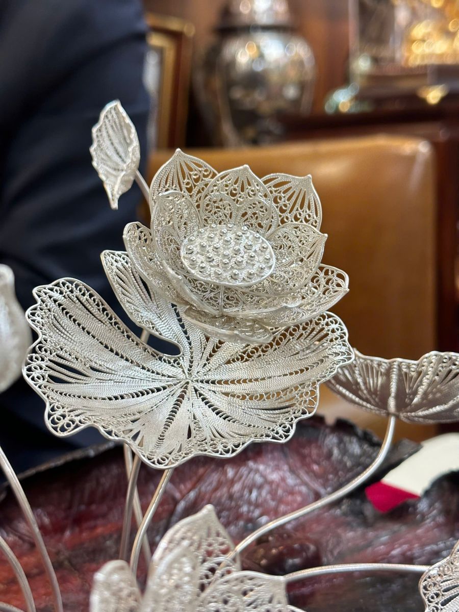 Sau khi khách hàng duyệt thiết kế, các nghệ nhân tài hoa sẽ bắt đầu công đoạn chế tác thủ công. Đây là lúc kinh nghiệm và sự khéo léo của người thợ được phát huy tối đa. Từ việc nung chảy bạc, kéo sợi, tạo hình, cho đến các kỹ thuật chạm khắc và đánh bóng cuối cùng, mọi bước đều đòi hỏi sự tập trung cao độ và độ chính xác tuyệt đối. Sản phẩm hoàn thiện, tiêu biểu là mô hình "Sắc Sen Bạc Nguyên Chất", không chỉ là một vật phẩm mà là tinh hoa của sự lao động nghệ thuật.
