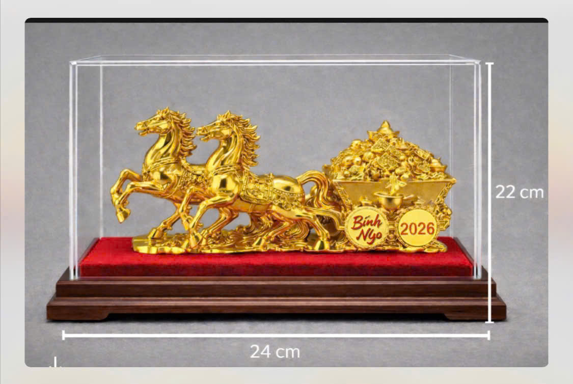 Khi trao tặng quà tặng đồng mạ vàng này, người tặng đã gửi gắm lời chúc về một năm mới "Mã đáo thành công", công việc thuận lợi, tiền tài dồi dào như cỗ xe chở đầy vàng. Đặc biệt, đối với những người làm ăn lớn, món quà này còn mang ý nghĩa về sự gắn kết, cùng nhau phát triển và tạo ra những thành tựu vượt bậc. Vật phẩm phong thủy cao cấp này được đặt trang trọng trong hộp kính mica trong suốt, kèm đế gỗ sang trọng, nâng tầm giá trị và sự chuyên nghiệp khi trao tặng.